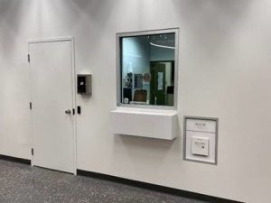 Once you enter the building, you must go in the hallway, halfway through the building. At your right, there will be the security office.